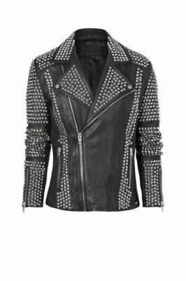 New Mens Handmade Jackets Silver Studded Cowhide Leather Zipper Style Jacket