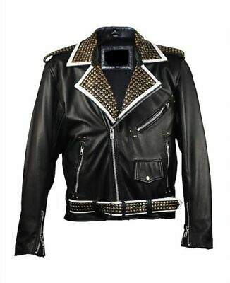 Men's Handmade Jackets Studs Fashion Cowhide Leather Motorcycle Vintage Style Jacket