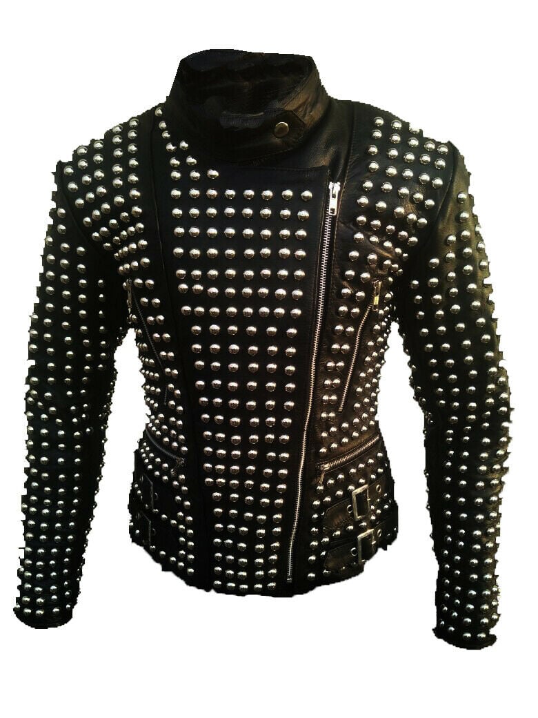 Mens Handmade Fashion Jacket Silver Bullet Style Studs Long Sleeves Covered Zip