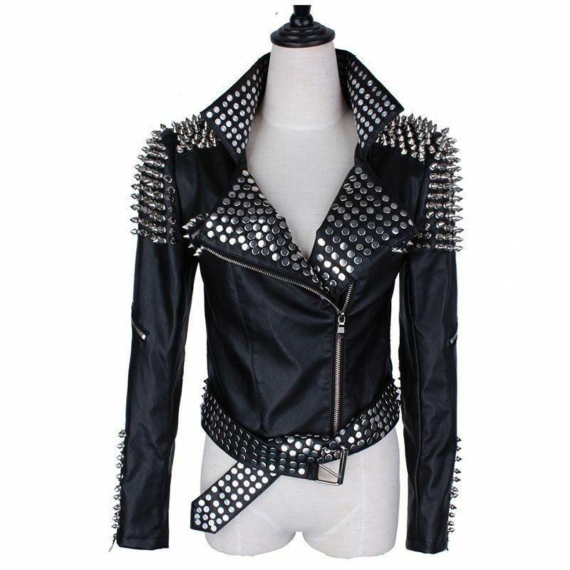 HANDMADE WOMENS FASHION JACKET HAND FIXED SILVER STUDDED VINTAGE LEATHER JACKET