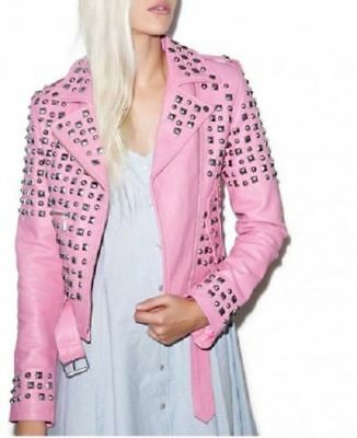 HANDMADE WOMENS FASHION PREMIUM QUALITY SOFT LEATHER JACKET HAND FIXED STUDS