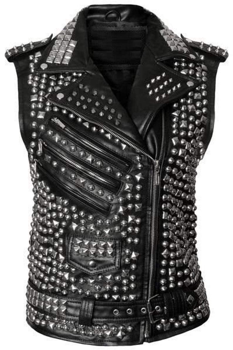 Womens New Handmade Leather Studded Vest Studded Leather Vest Black Spike Belted Studs Zipper Brando Leather Vest