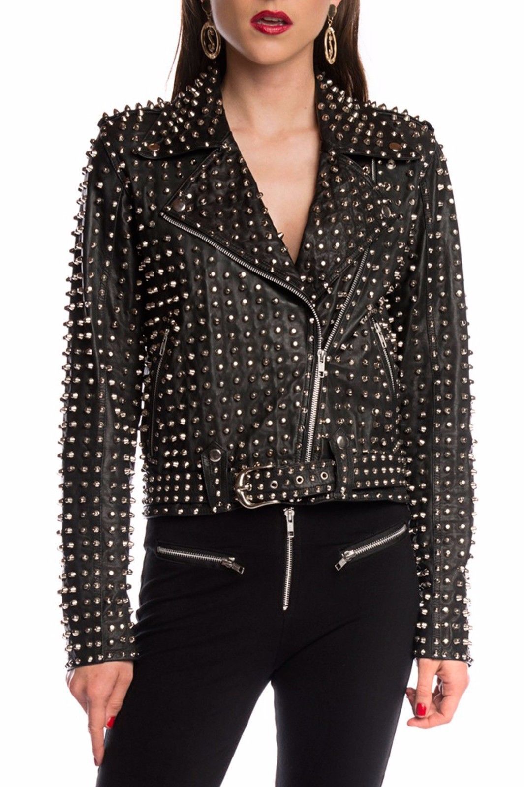 HANDMADE WOMENS FASHION JACKET REAL QUALITY LEATHER SPIKED STUDDED JACKET
