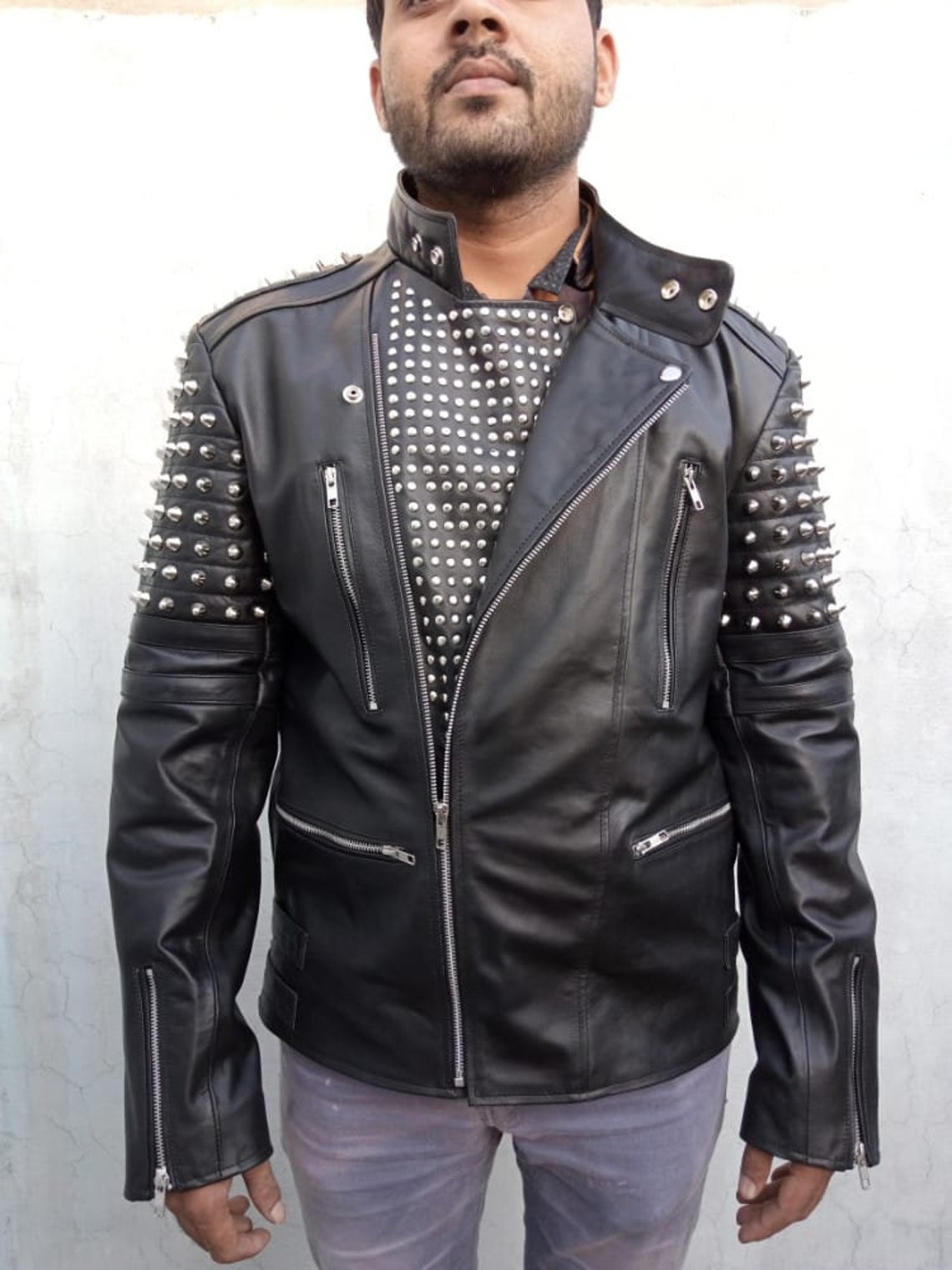 Men Rock Punk Style Black Leather Jacket with Studs for Bikers and Racers, Stylish Leather Jacket