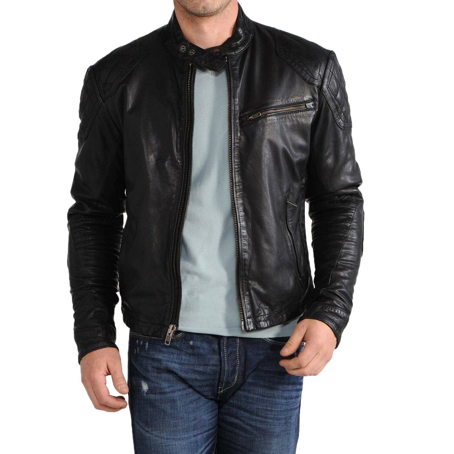 Mens Leather Jacket Slim Fit Biker Motorcycle Genuine Cowhide Jacket Coat