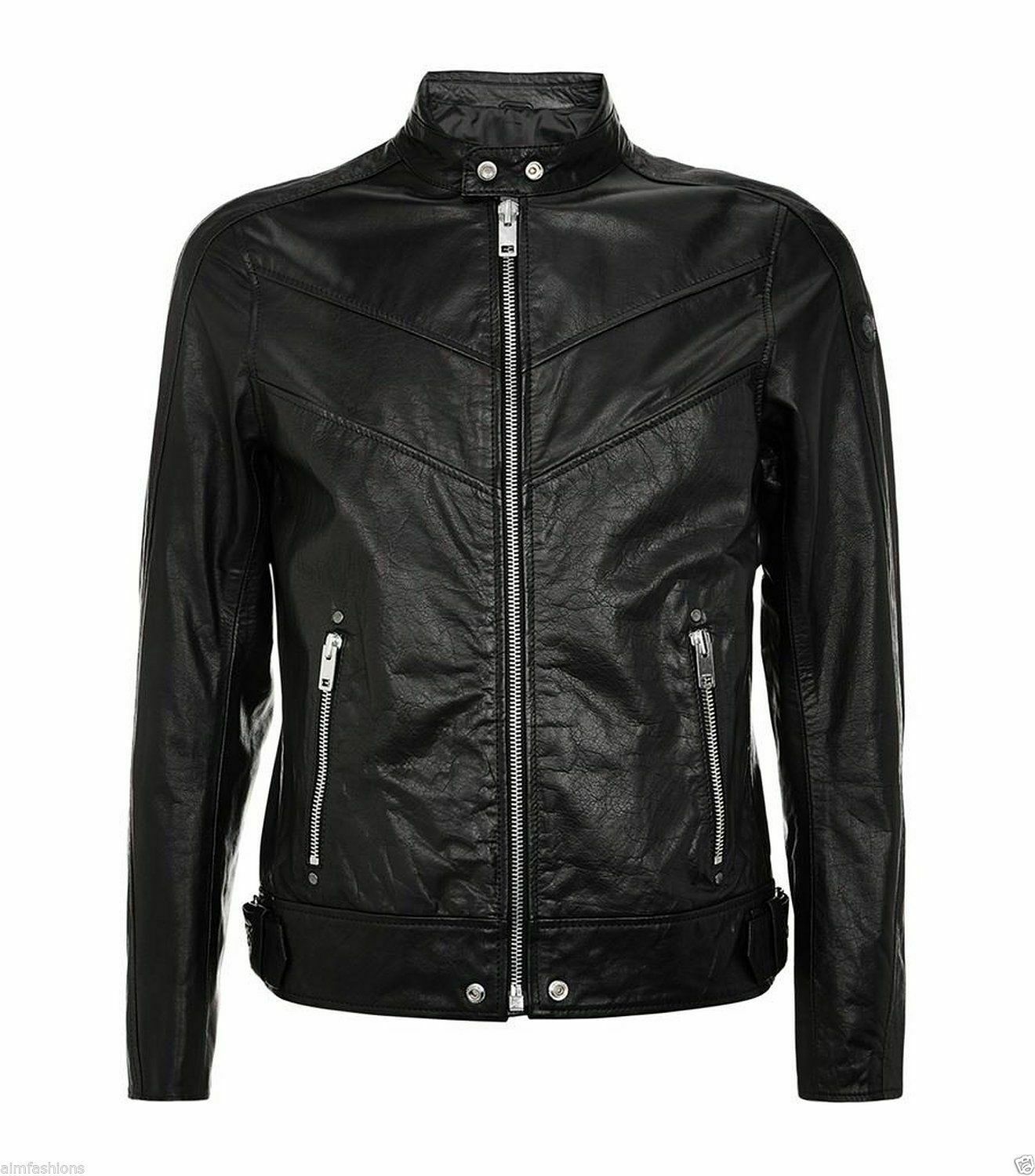 Men Leather Jacket Slim Fit Biker Motorcycle Genuine Lambskin