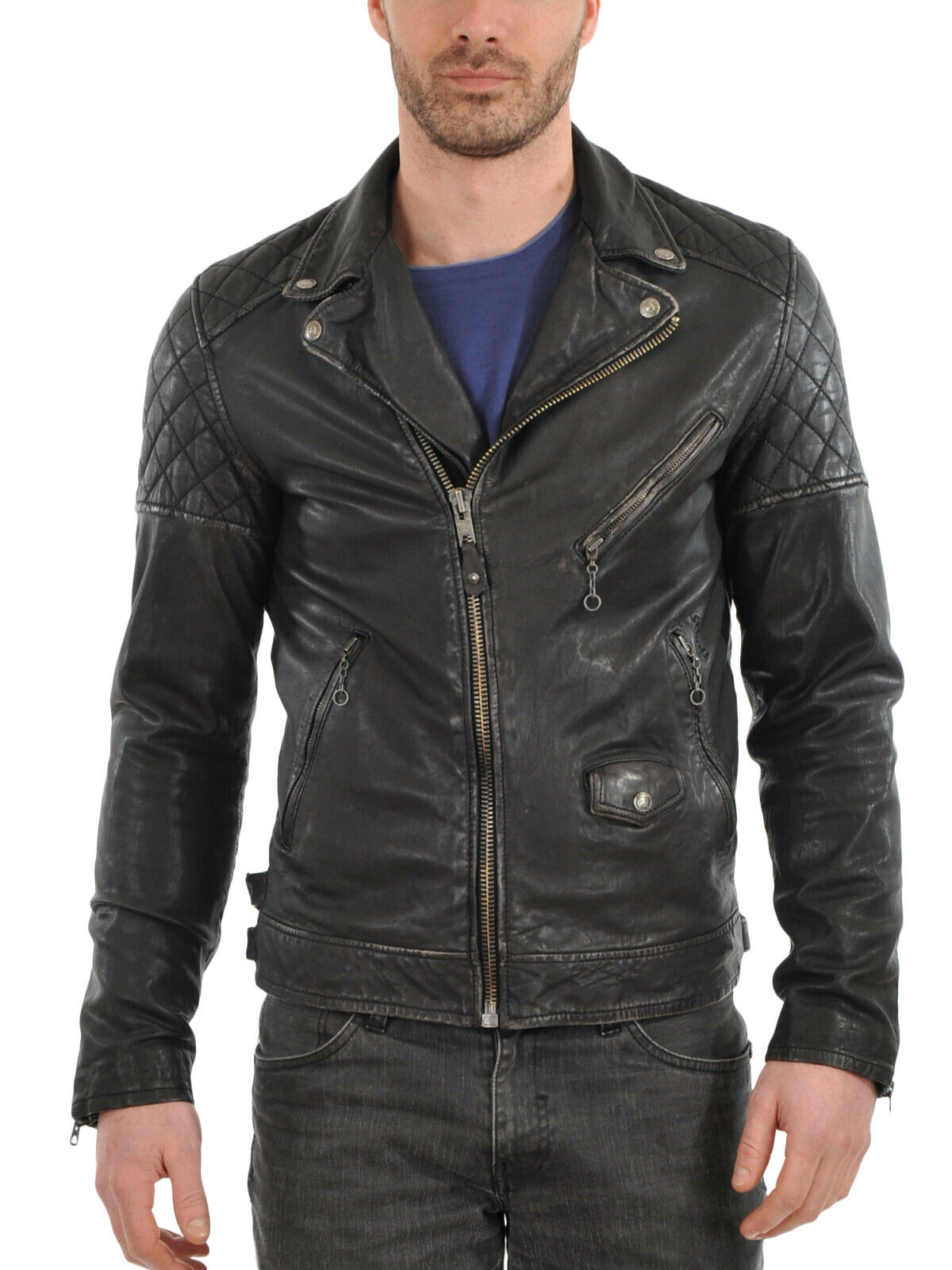 Men's Genuine Lambskin Leather Jacket Slim fit Moto Biker jacket