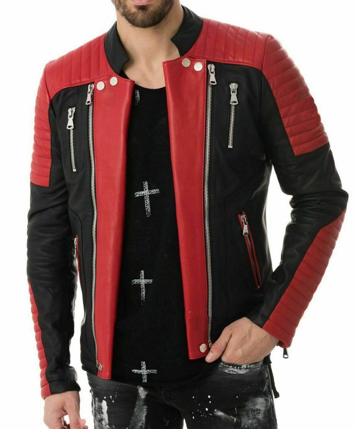 Men Leather Jacket Coat Motorcycle Biker Slim Fit Outwear Jackets