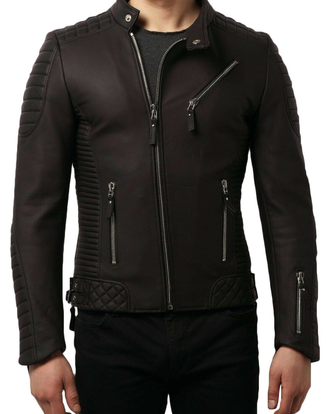 New Men Designer Genuine Cowhide Soft Biker Leather Jacket