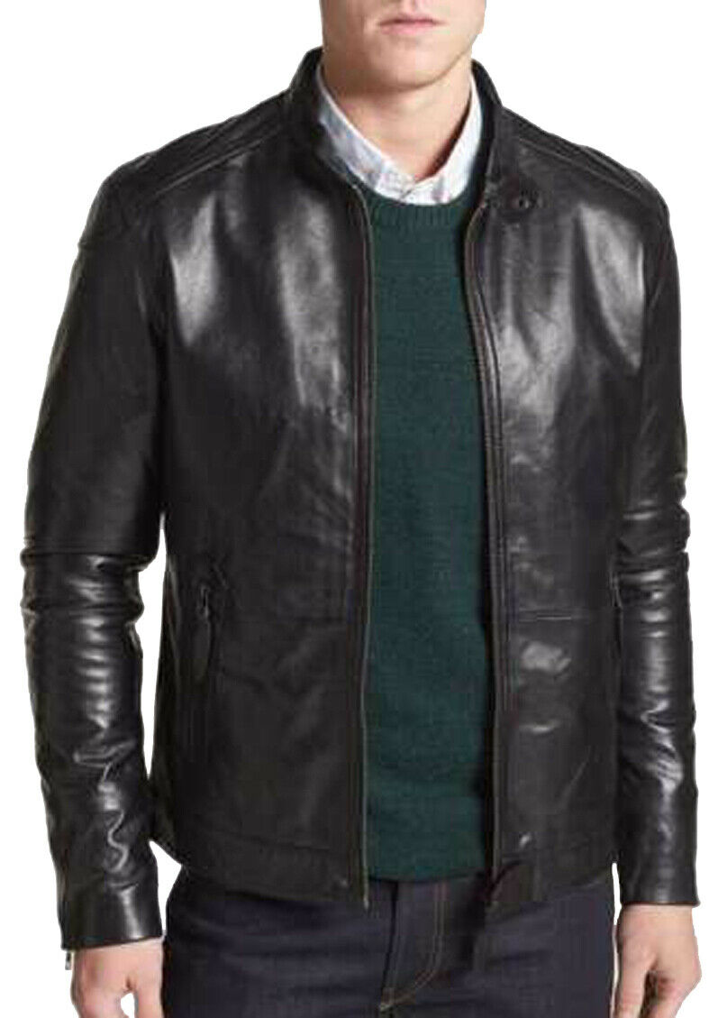 New Men's Genuine Cowhide Leather Slim Fit Biker Motorcycle Jacket