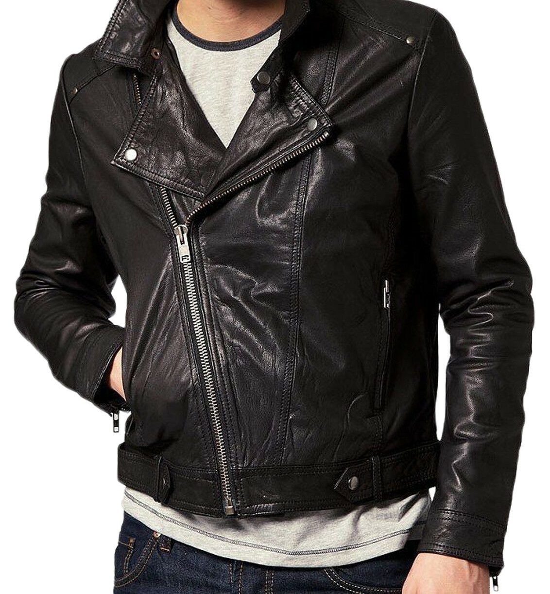 Men Leather Jacket New 100% Genuine Soft Lambskin Slim Biker Bomber Coat
