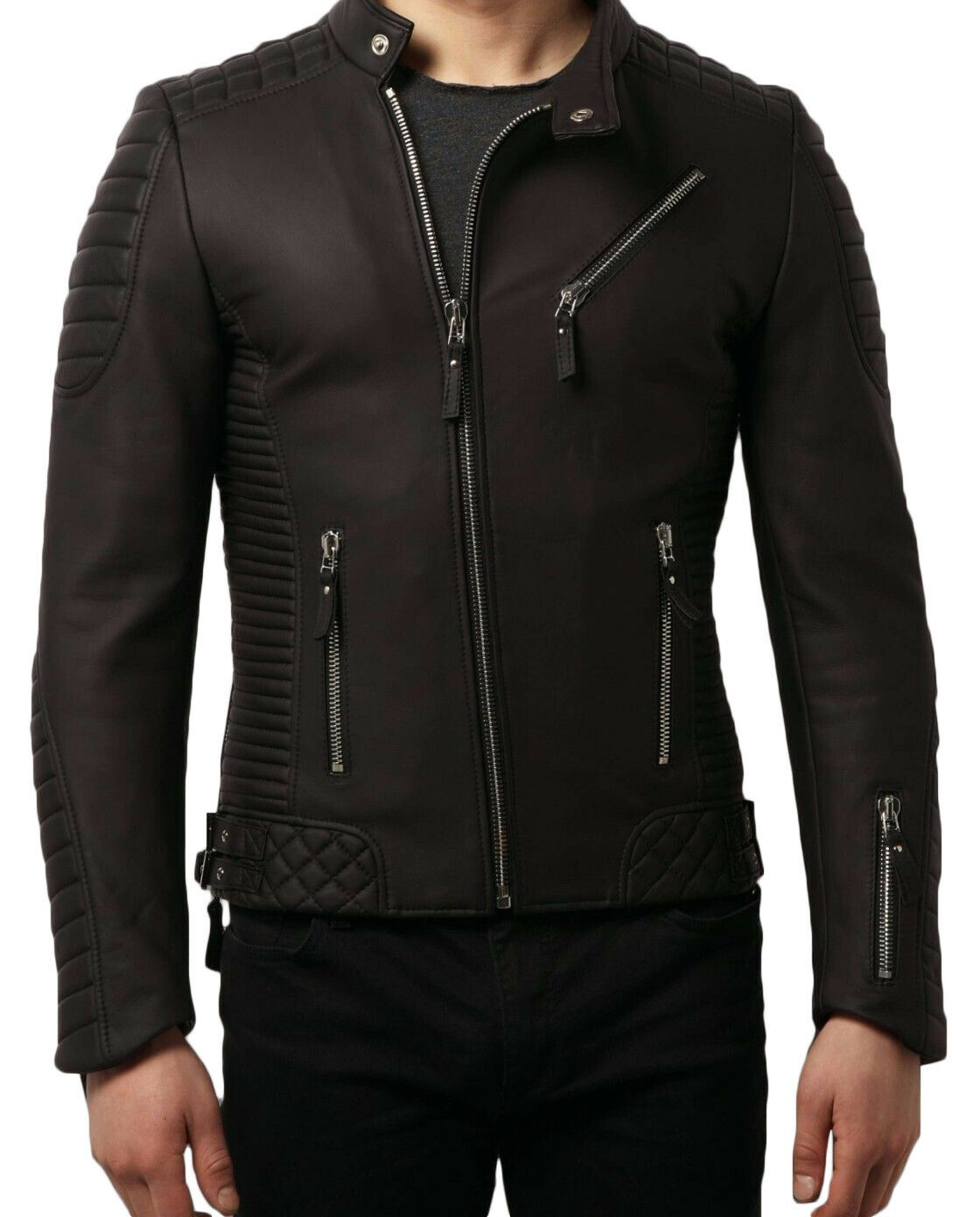 New Men Designer Genuine Cowhide Soft Biker Leather Jacket
