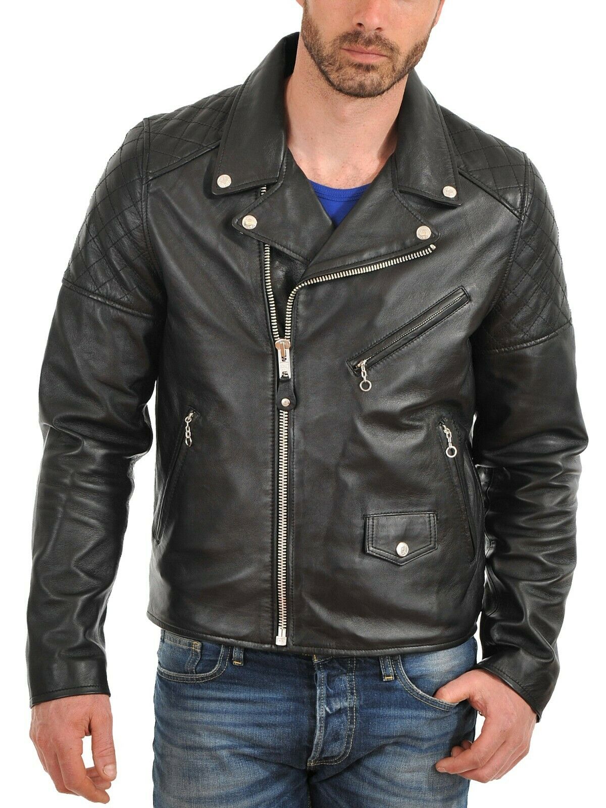 Men Leather Jacket Coat Motorcycle Biker Slim Fit Outwear Jackets