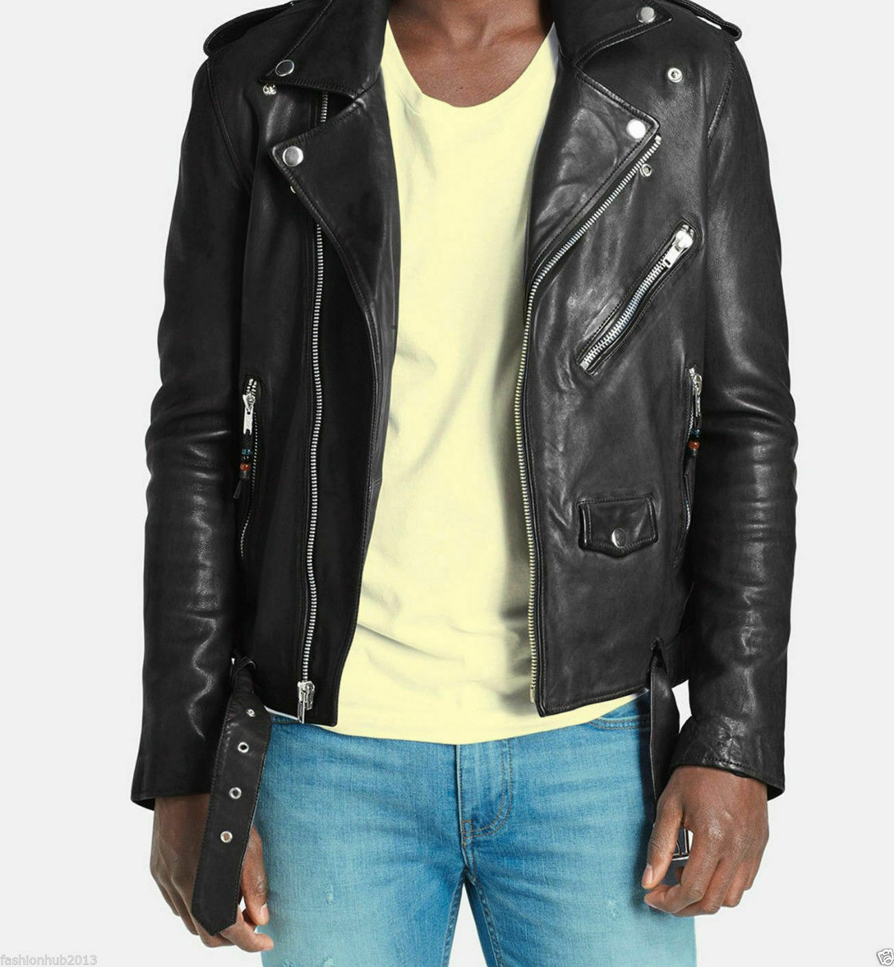Men's Genuine Lambskin Leather Jacket Slim fit Biker Motorcycle