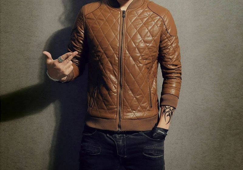 New Mens Leather Jacket Slim fit Biker Motorcycle Genuine lambskin