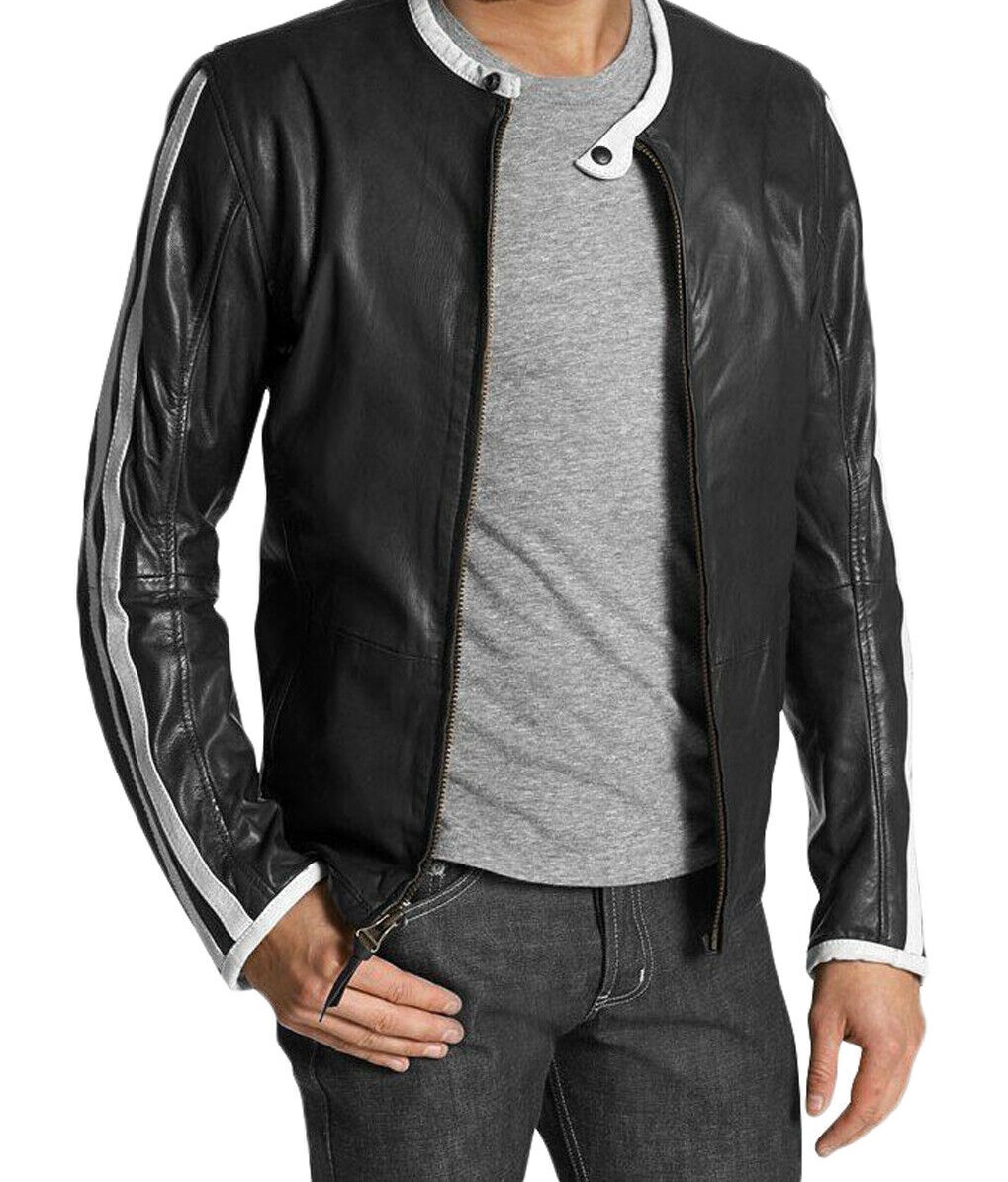 New Genuine Cowhide Leather Jacket Motorcycle Biker Men's
