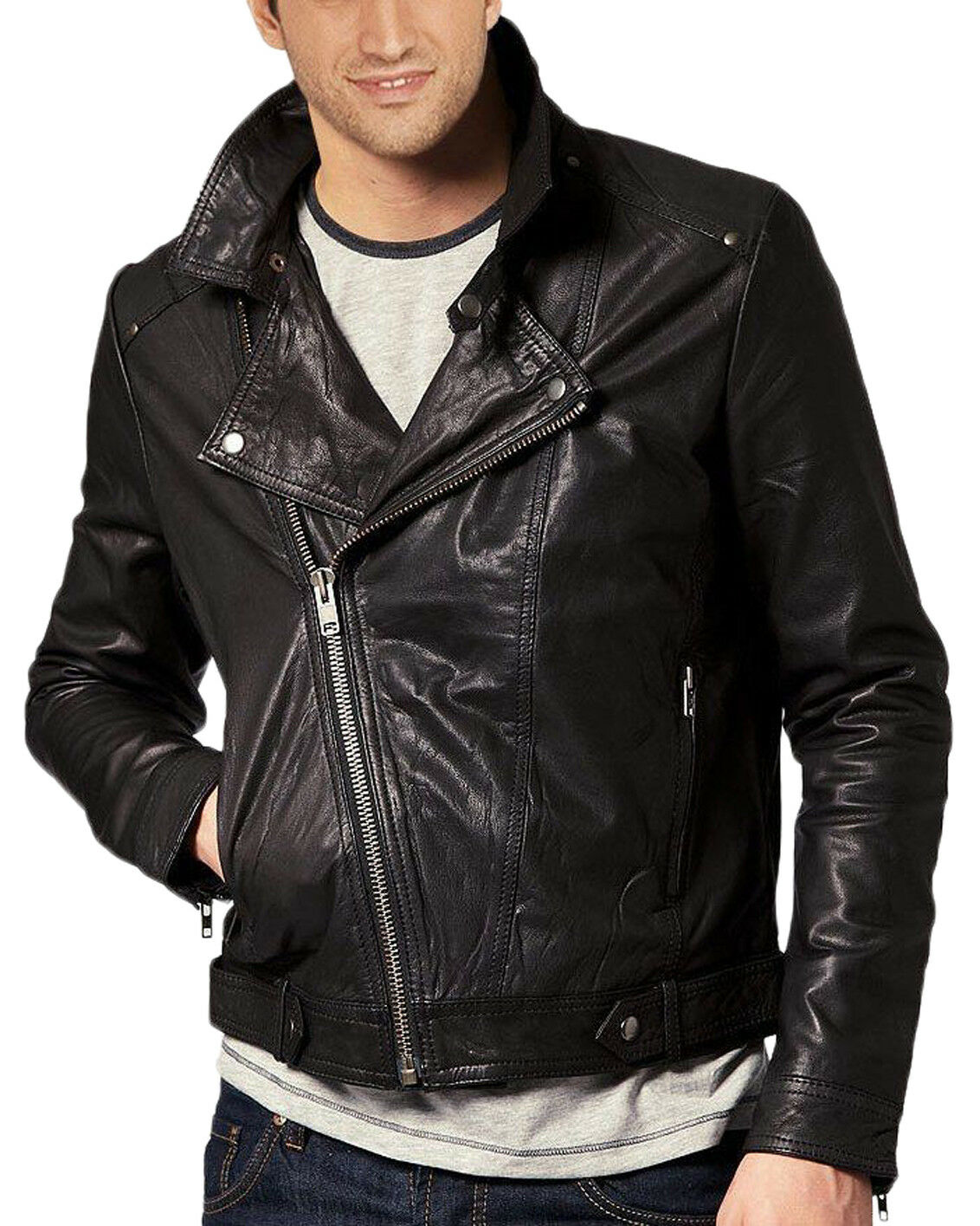 Men Leather Jacket New 100% Genuine Soft Lambskin Slim Biker Bomber Coat
