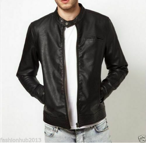 Men's Genuine Lambskin Leather Jacket Slim fit Biker Motorcycle