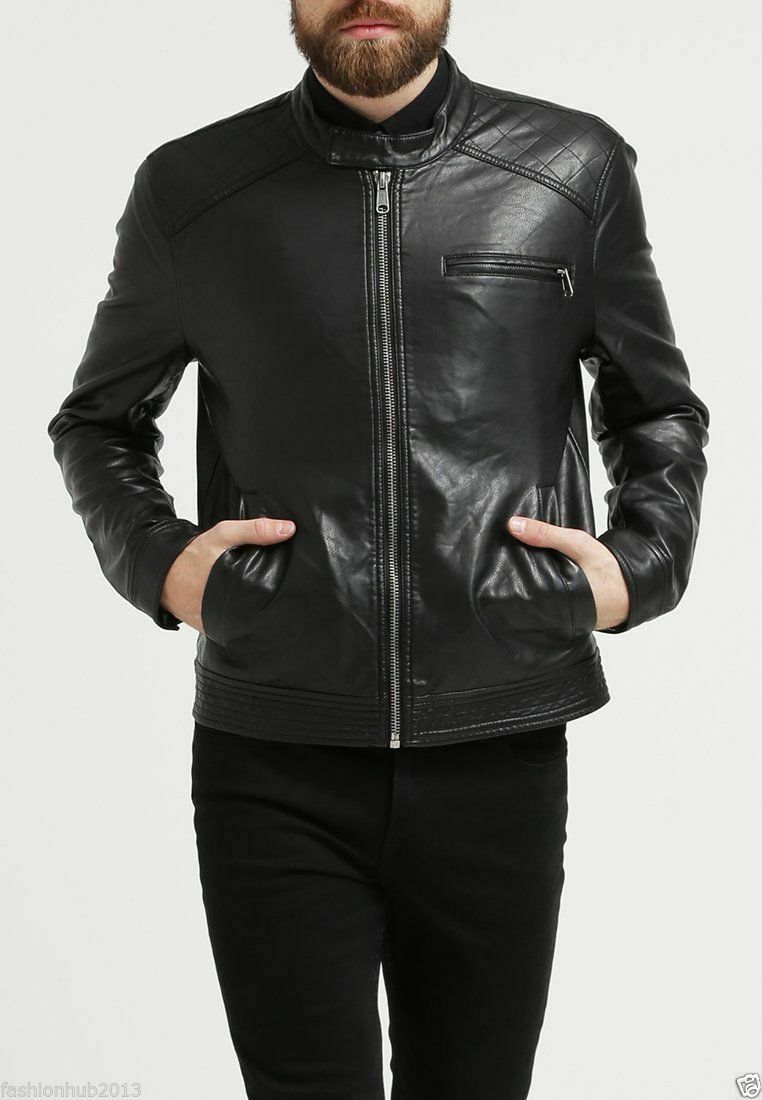 Men's Genuine Lambskin Leather Jacket Slim fit Moto Biker jacket