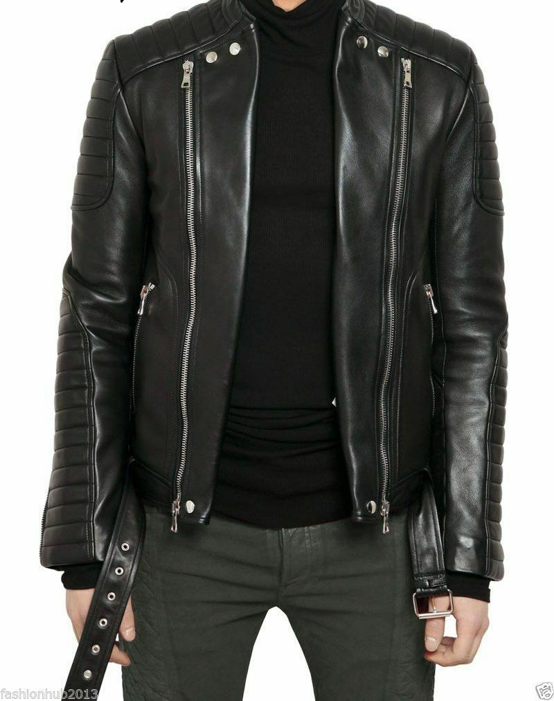 Men's Genuine Lambskin Leather Jacket Slim fit Moto Biker jacket