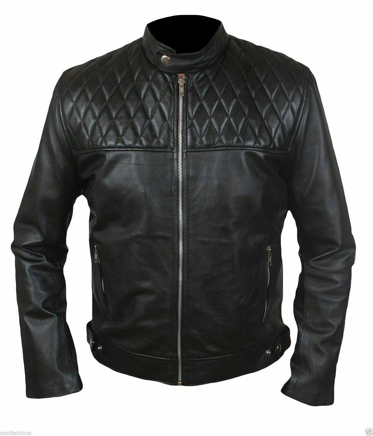 New Men Quilted Leather Jacket 100% Genuine Soft Lambskin Biker