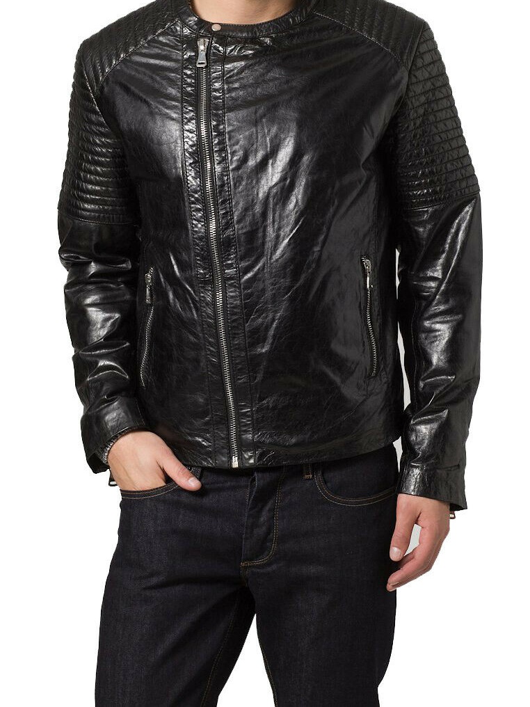 Men Motorcycle Black Lambskin Leather Jacket Coat Outwear Jackets