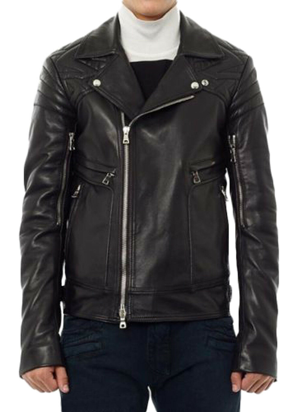 Black Friday Men Motorcycle Black Lambskin Leather Jacket Coat Outwear