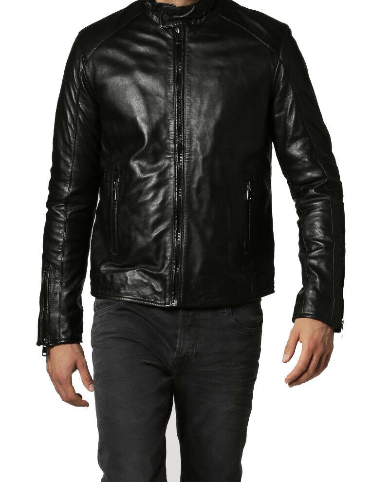 Men Motorcycle Black Lambskin Leather Jacket Coat Outwear Jackets