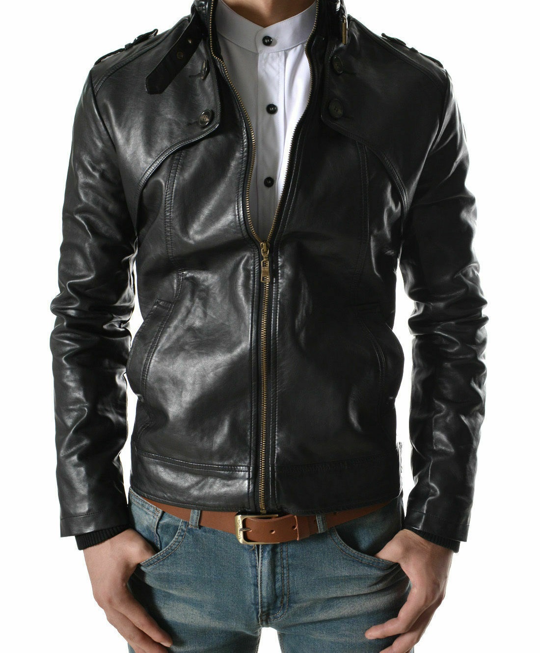 Men's Genuine Lambskin Leather Jacket Slim fit Motorcycle jacket