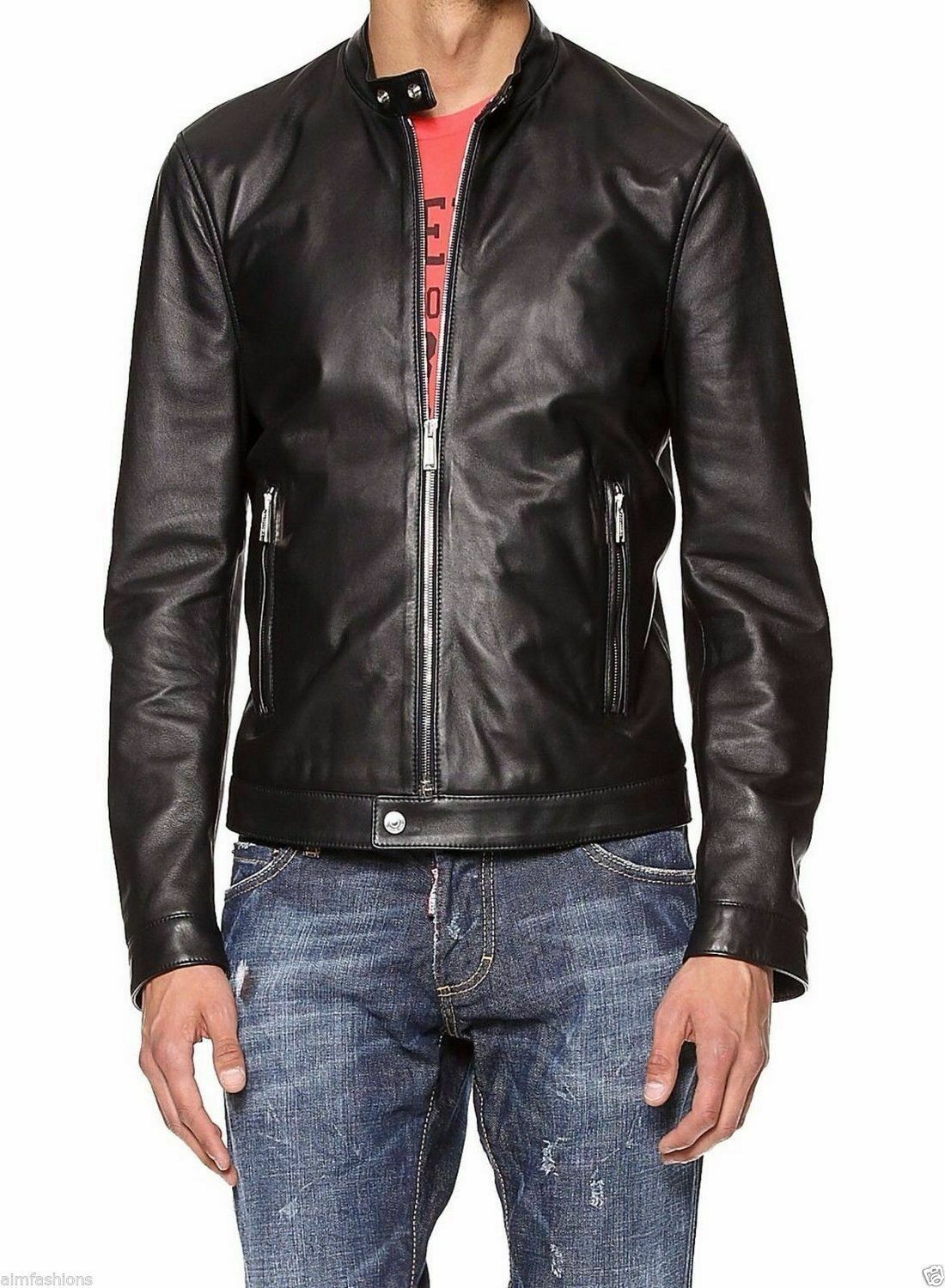 New Men Quilted Leather Jacket 100% Genuine Soft Lambskin Biker