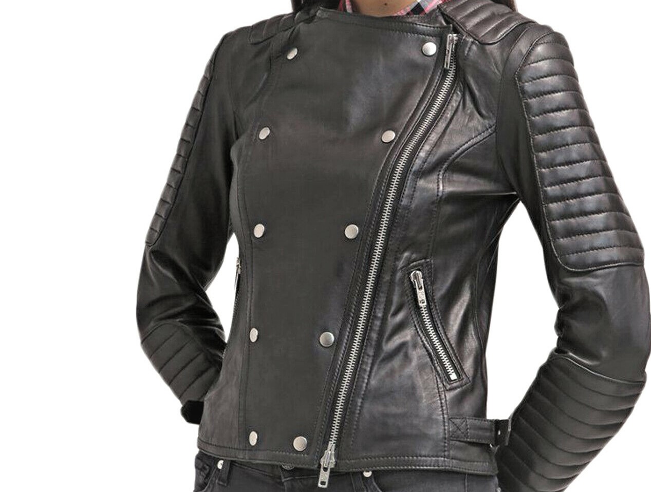 Women Leather Jacket Genuine Lambskin Pure Leather Bomber Biker Jacket