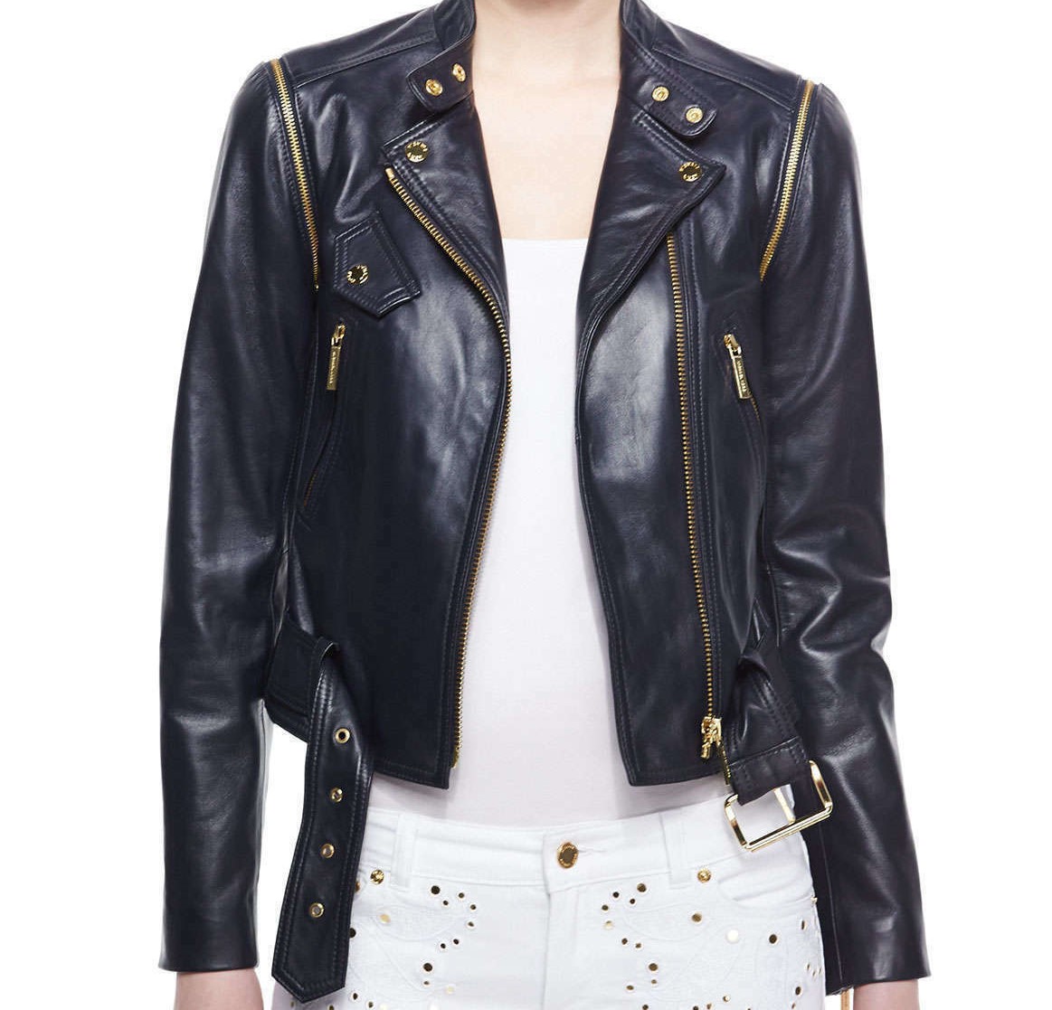 100% New Genuine Leather Lambskin Women Biker Motorcycle Jacket Ladies