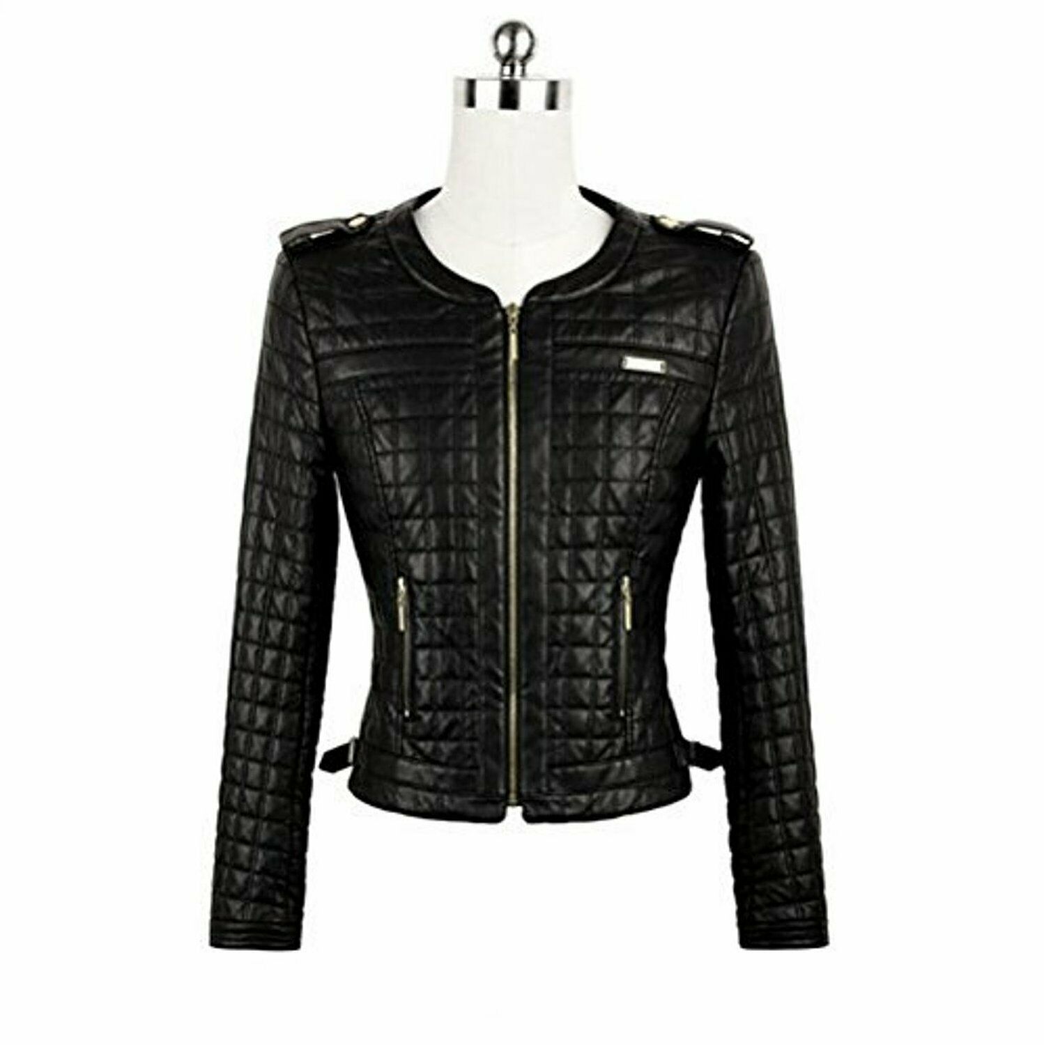 100% New Genuine Leather Lambskin Women Biker Motorcycle Jacket Ladies