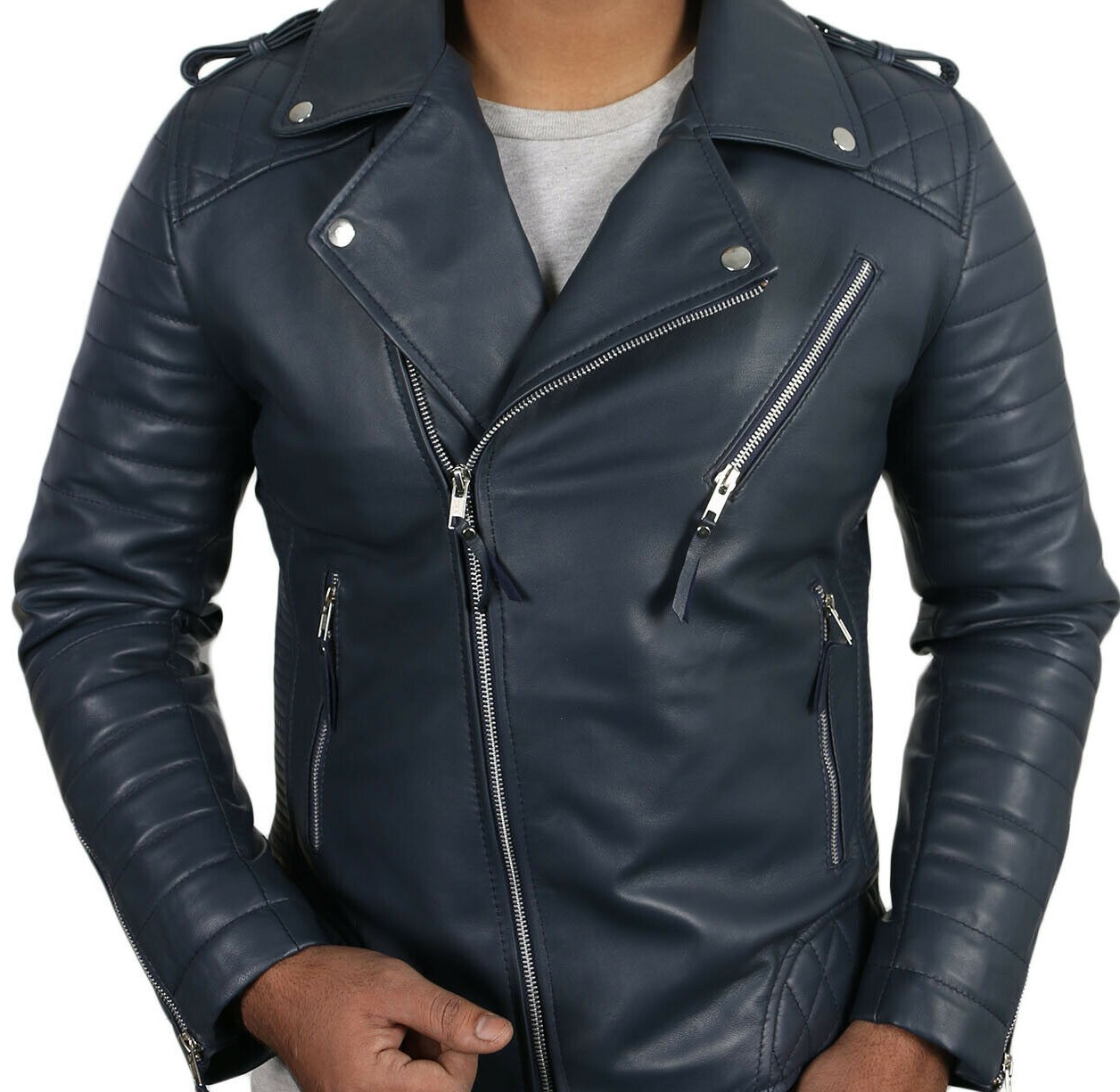 New Men's Navy-Blue Genuine Lambskin Leather Jacket