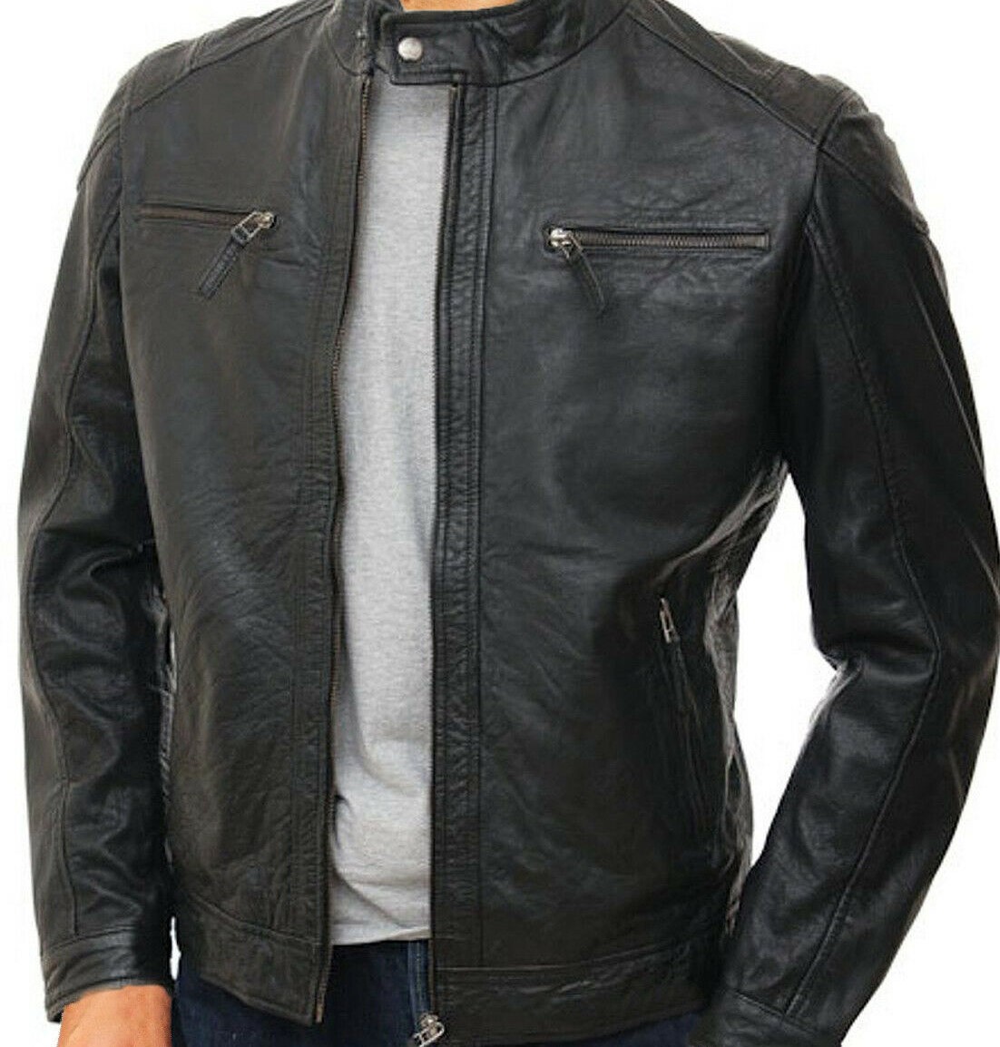 New Men's Black Genuine Lambskin Leather Jacket