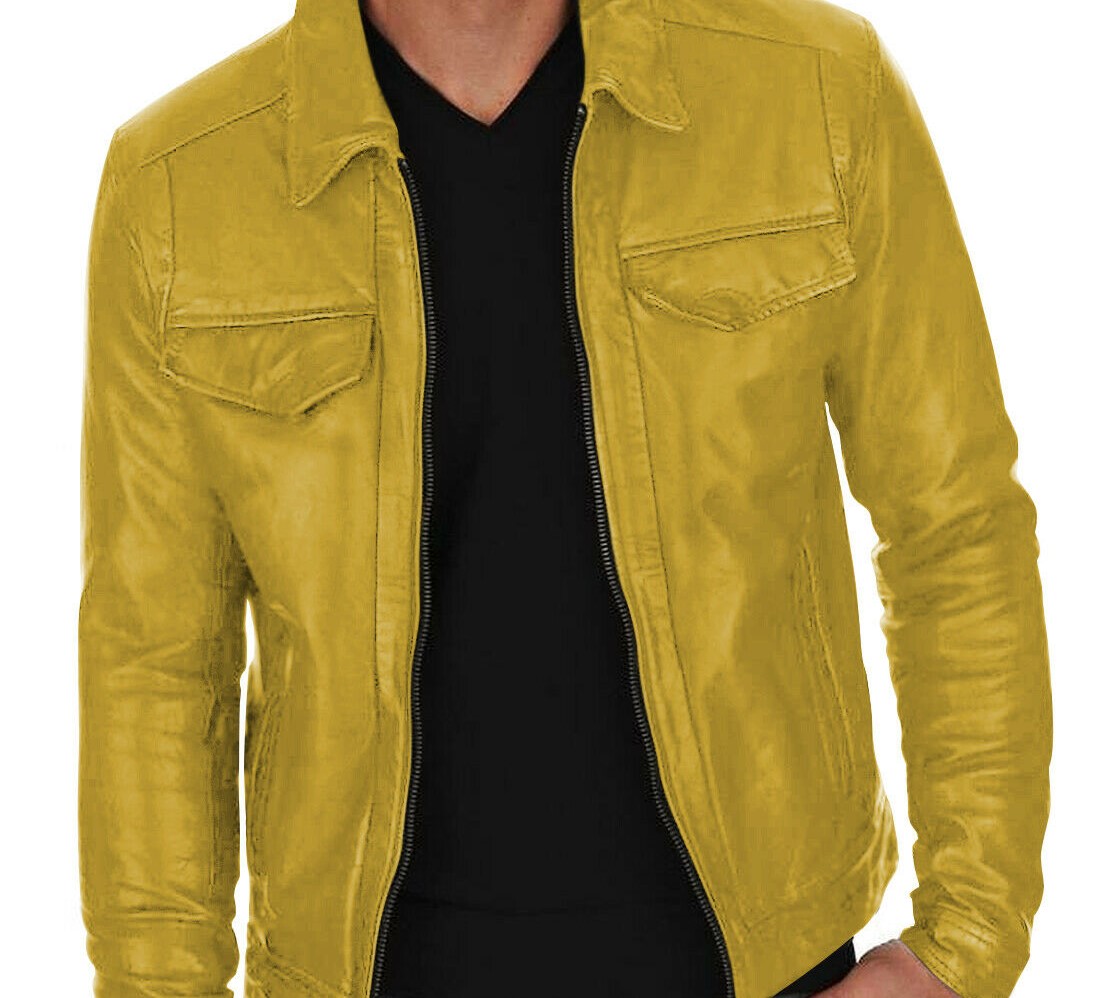 New handmade Men's Yellow Genuine Lambskin Leather Jacket
