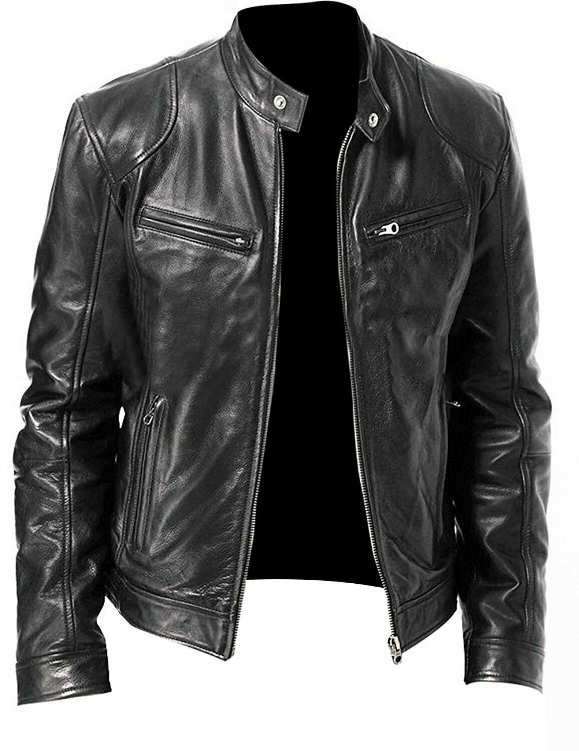 Men's Cafe Racer Jacket Vintage Biker Retro Motorcycle Cowhide Leather Jacket
