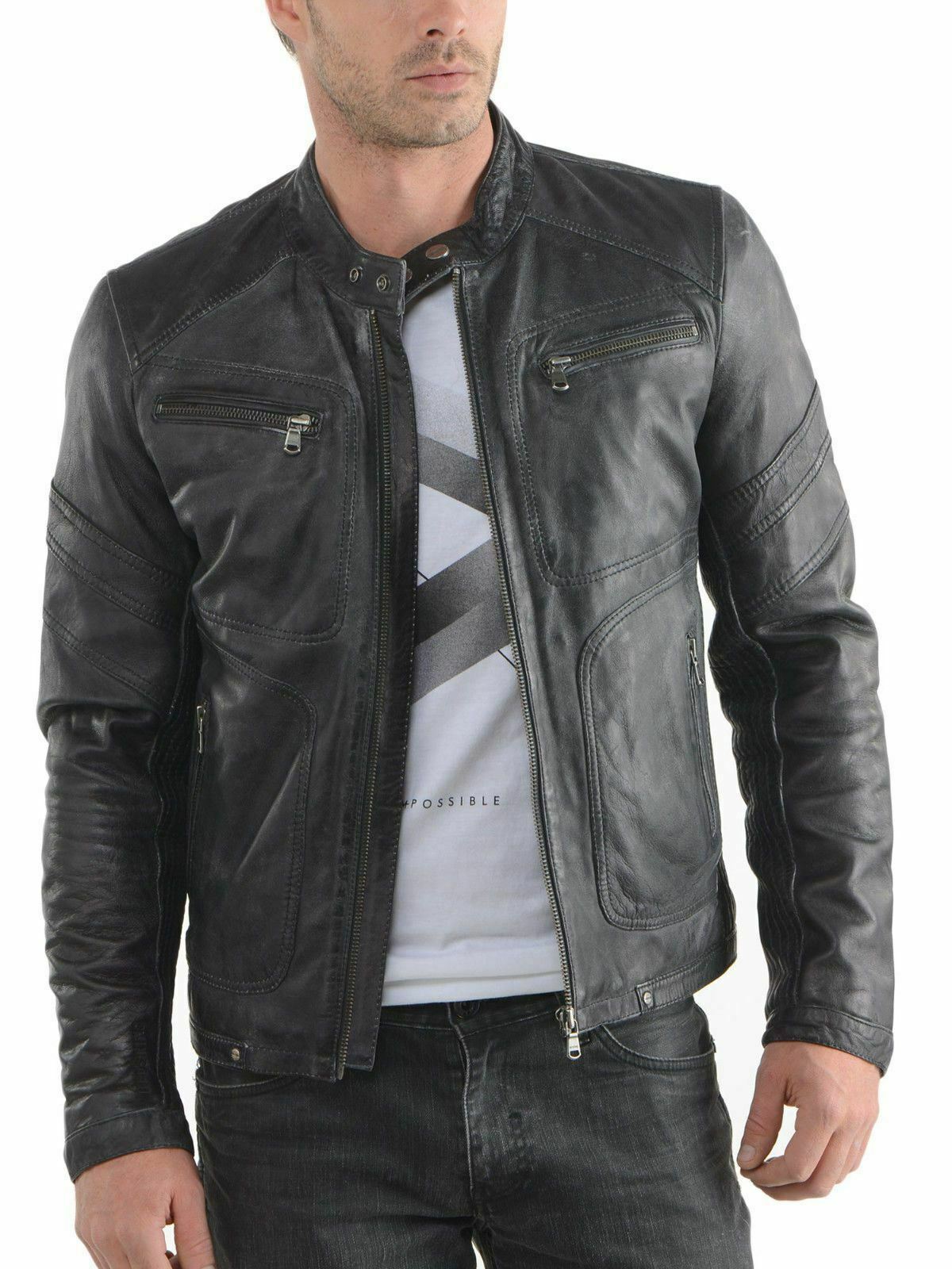 Leather Jacket Men S Biker Genuine Real Motorcycle