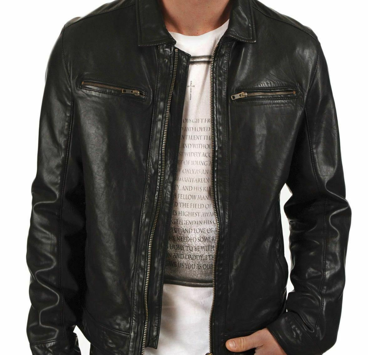 Leather Jacket Mens Motorcycle Biker Genuine Lambskin Premium jacket