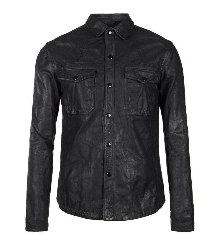 Men Pure Black Lambskin Leather Shirt Party Causal