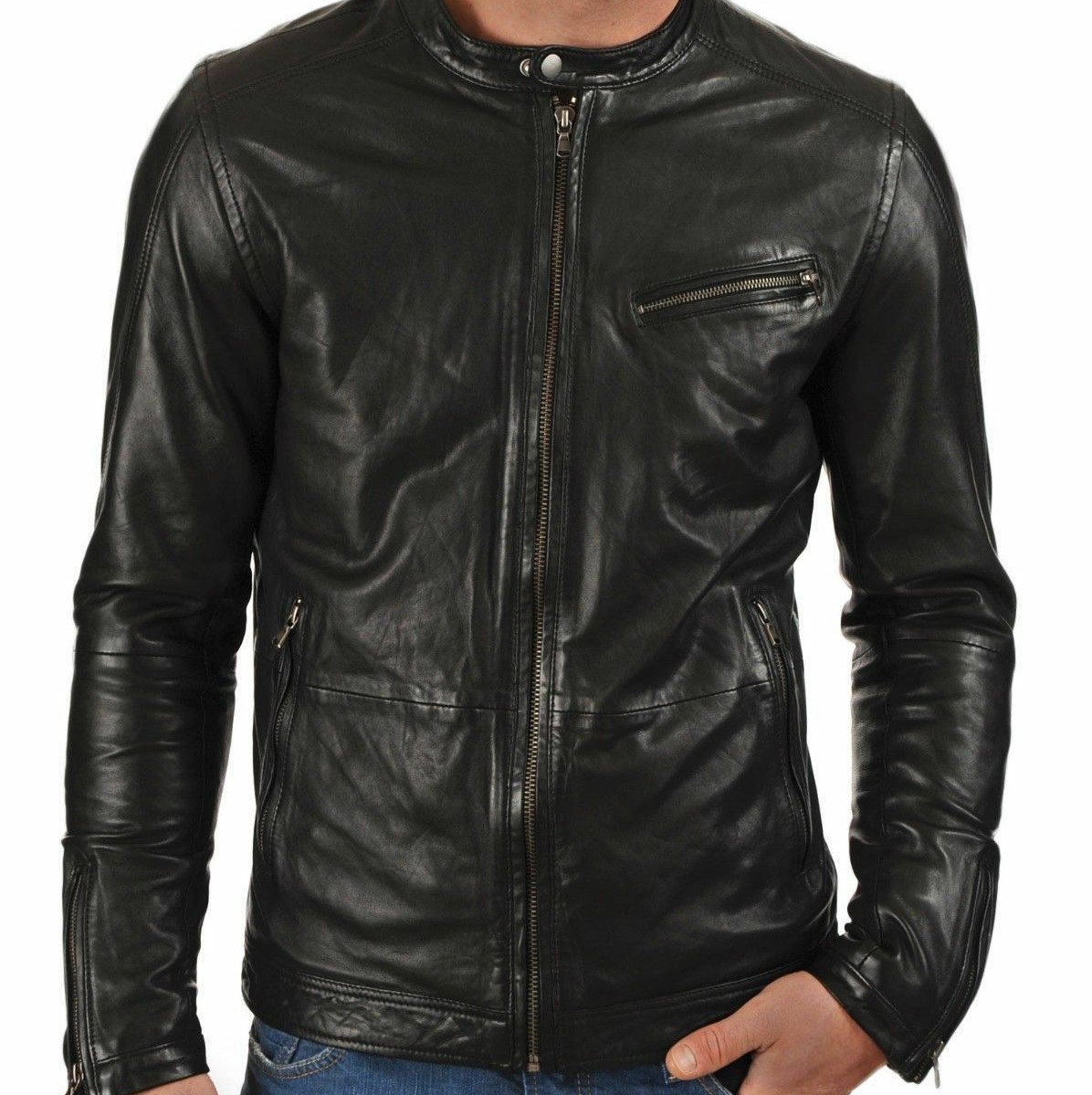 Men Jacket 100% Genuine Lambskin Leather Handmade Biker