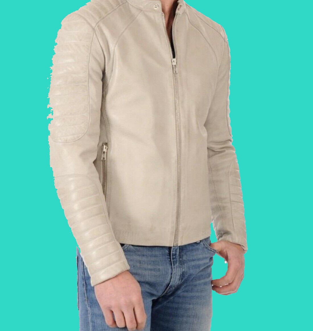 Beige Men's Leather Jacket Overcoat Biker 100% New Lambskin Jacket