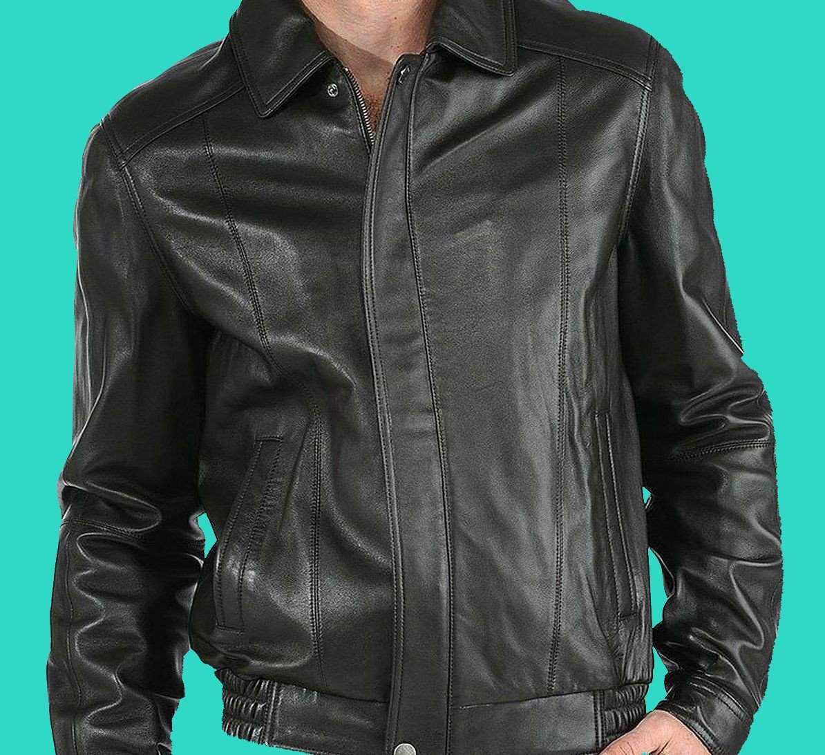 Men's Black Leather Jacket Biker Bomber Motorcycle Lambskin Jacket