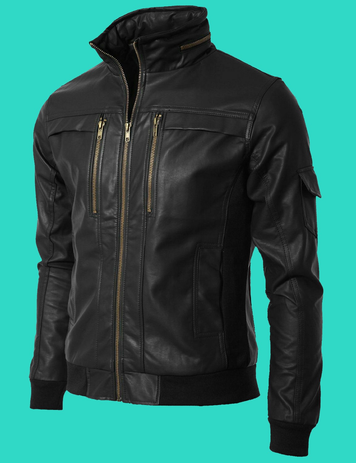 Men's Black Leather Jacket Biker Bomber 100% New Genuine Lambskin Jacket