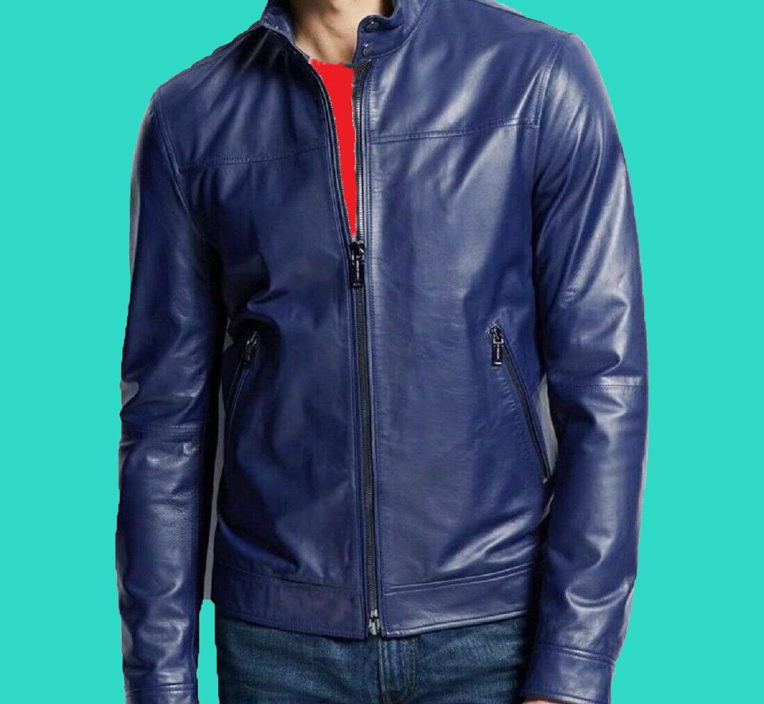 Blue Men's Leather Jacket Overcoat Biker 100% New Lambskin Jacket