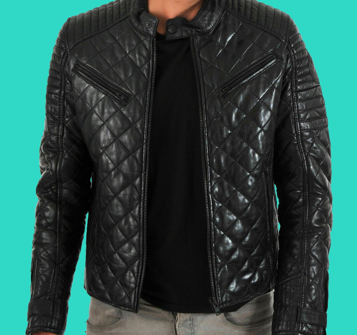 New Men's Black Quilted Leather Jacket Biker Genuine Lambskin Leather