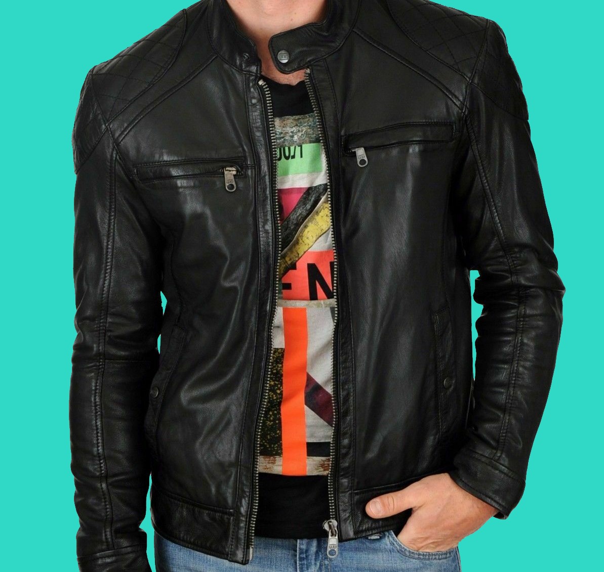 100% New Men's Black Leather Jacket Biker Motorcycle Lambskin Jacket