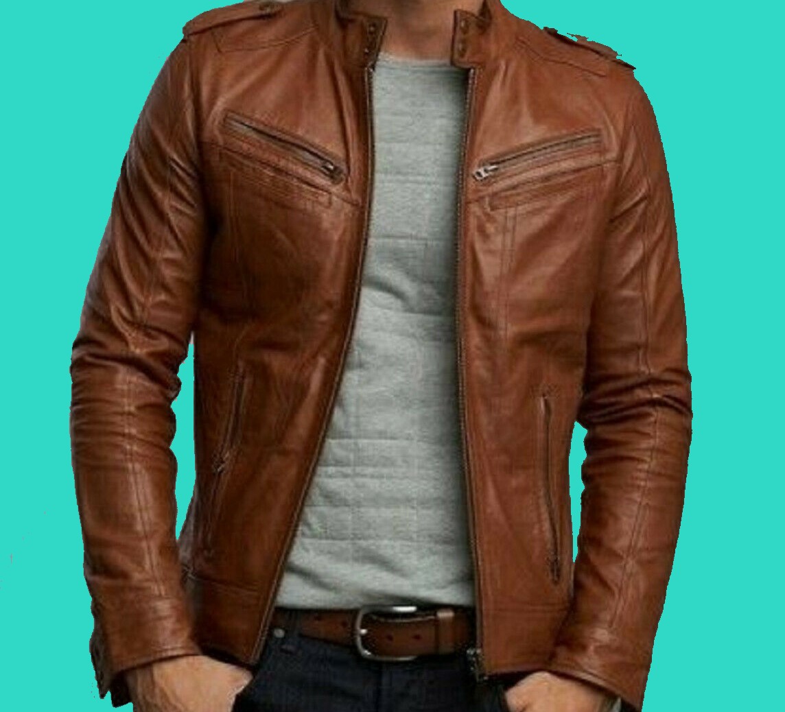 Men's Genuine Leather Jacket Bomber Biker Tan Brown Leather Jacket
