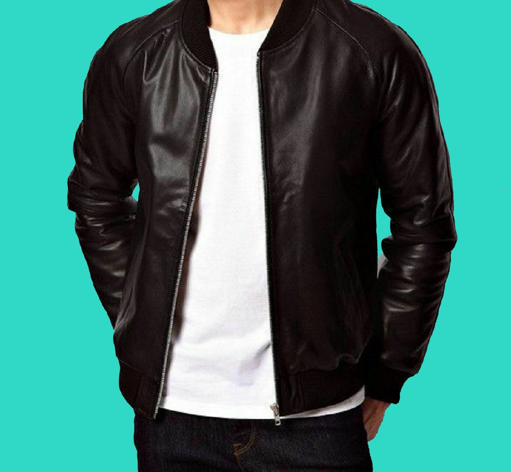 Men's Black Leather Jacket Biker Bomber Motorcycle Lambskin Jacket