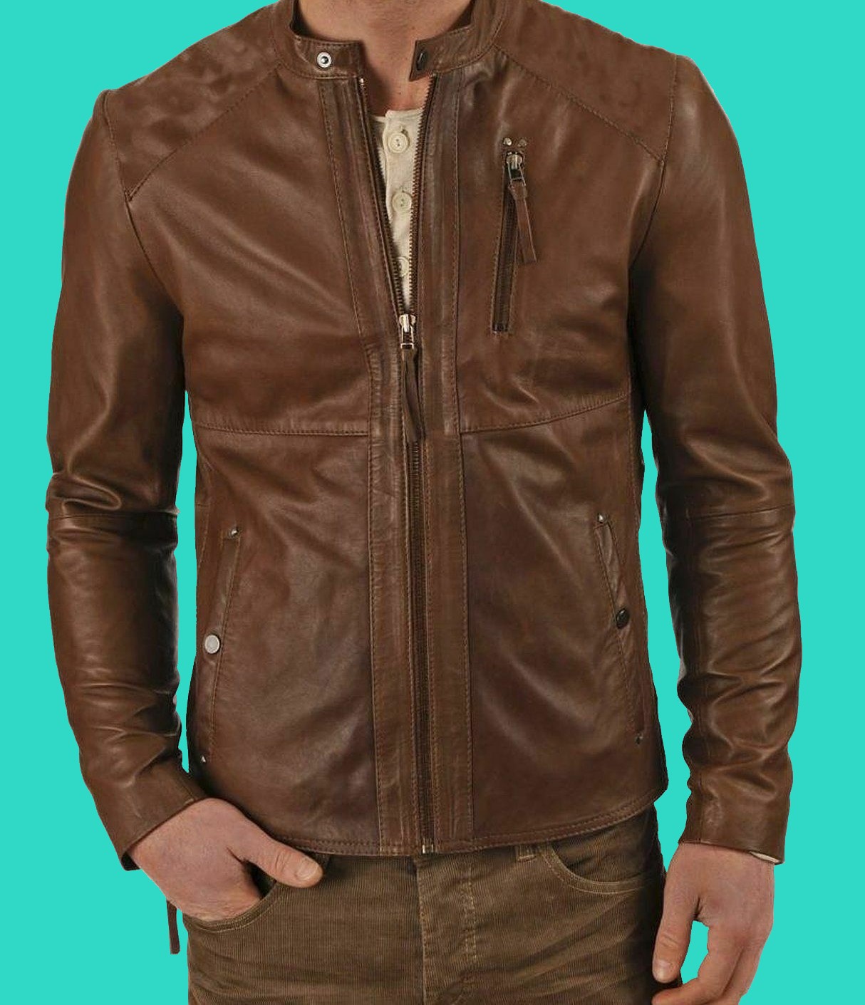 Men's Leather Jacket Biker Brown Motorcycle Genuine Lambskin Jacket